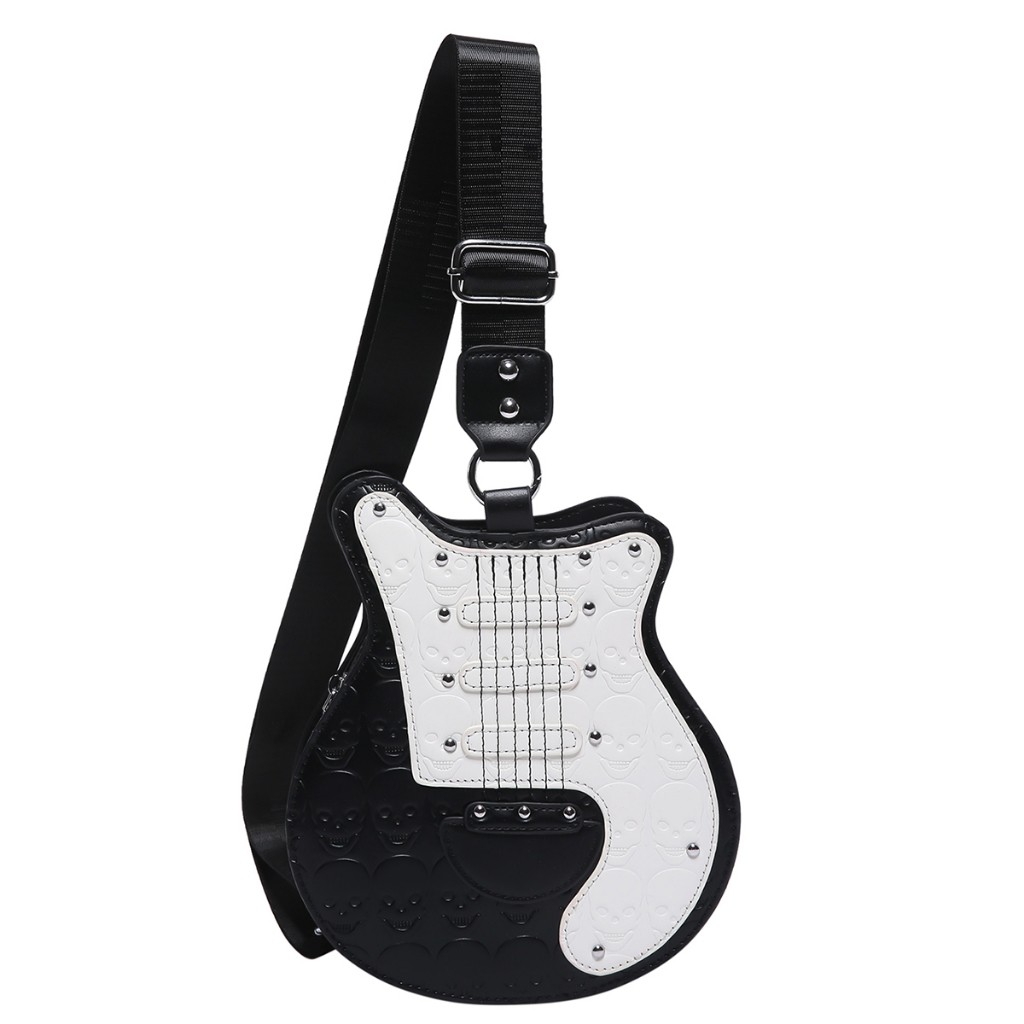 Surpreenda com atitude e estilo! Essa bolsa exclusiva em formato de guitarra elétrica é perfeita para mulheres que amam moda alternativa, estilo rock, punk ou gótico. Um acessório diferenciado que combina com você!