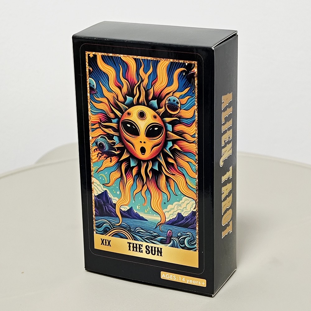 Descubra os mistérios do universo com este baralho de Tarô Alienígena, composto por 78 cartas ilustradas com arte cósmica e detalhada, baseado no clássico sistema Rider Waite. Perfeito para quem ama o esotérico, a ficção científica e deseja um toque futurista em suas leituras espirituais!