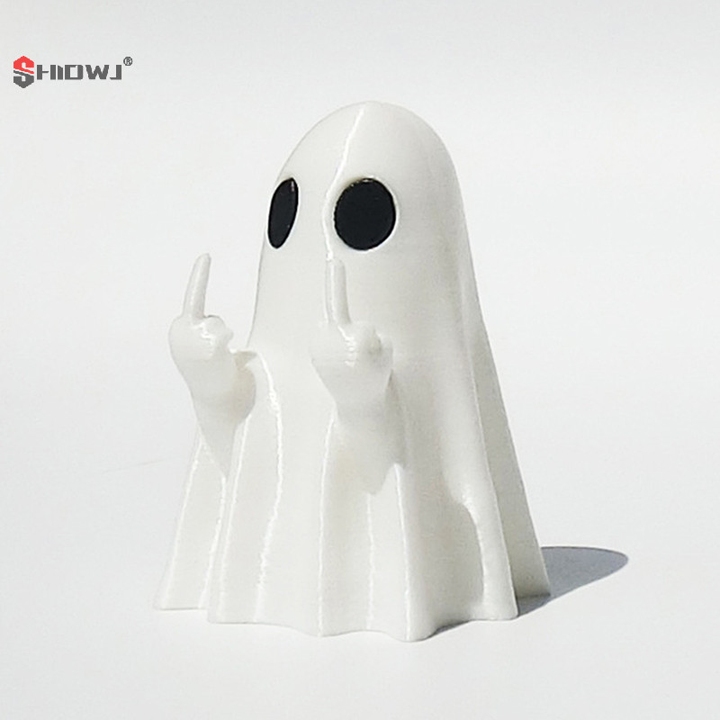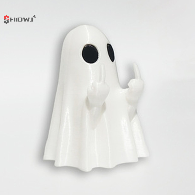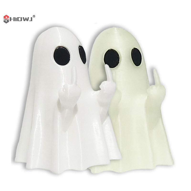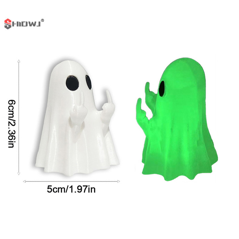 👻 Estátua Fantasma Luminoso com Dedo Médio – Mini Enfeite Sobrenatural 5x6cm