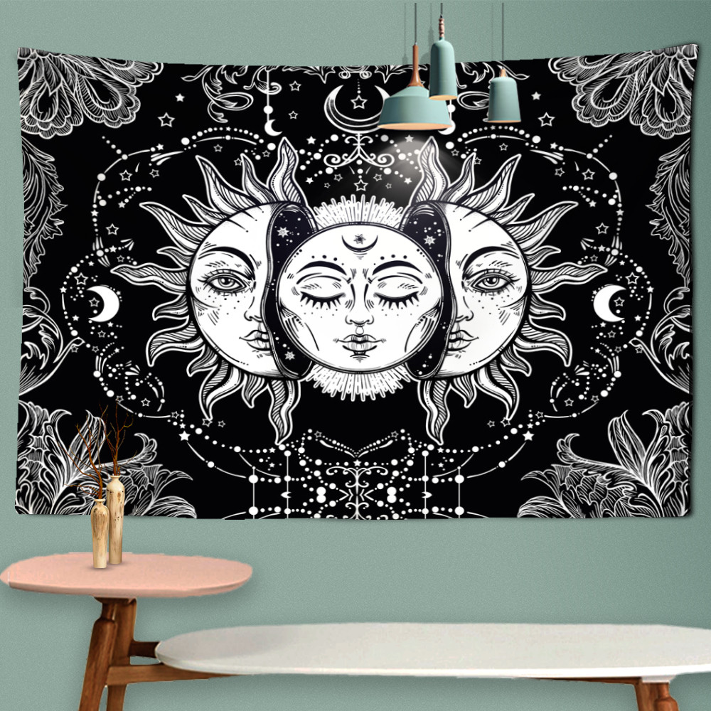 Transforme seu espaço em um verdadeiro santuário espiritual com essa belíssima tapeçaria de Sol, Lua e Horóscopo!